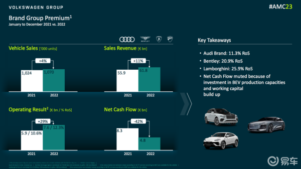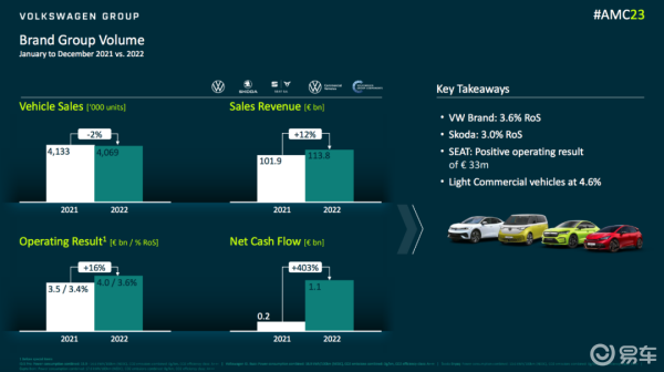 而2022年供应链和物流问题造成的运营资金增加,使得汽车业务净现金流下降到48亿欧元,但集团预计在2023年这项问题将得到大幅缓解,同时供应链瓶颈问题也将逐渐好转。