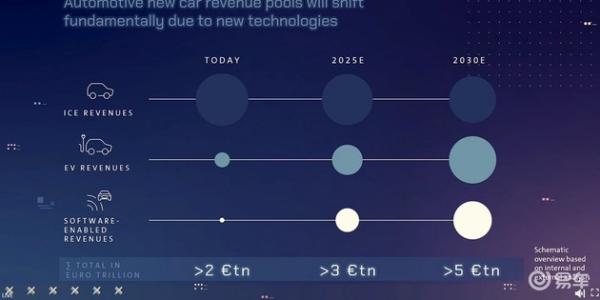 到2030年,软件相关的销售额预计将达到1.2万亿欧元,比预计的纯电动汽车和燃油车销量之和增加约三分之一,从而使整个移动出行市场的销售额增加了一倍多,从目前的约2万亿欧元增加到预计的5万亿欧元。个人移动出行业务预计将占据85%,而这些份额将是大众汽车集团未来的核心业务。