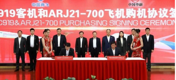 昨天(2月26日),中国最大的金融资产管理公司——中国华融资产管理股份有限公司(简称“中国华融”)旗下控股子公司华融金融租赁股份有限公司(简称“华融金融租赁”)与中国商用飞机有限责任公司(简称“中国商飞公司”)在北京签署30架C919大型客机和20架ARJ21新支线飞机购机协议。中国华融董事长赖小民、中国商飞公司董事长贺东风出席签约活动,华融金融租赁董事长李鹏、中国商飞公司副总经理程福波代表双方签署协议。