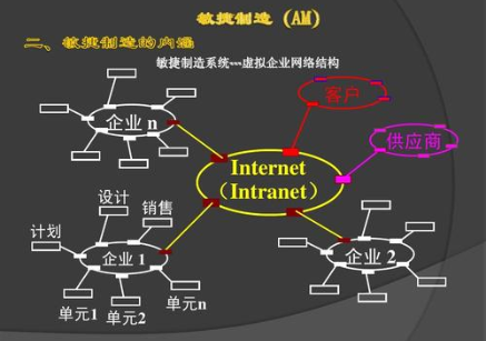 敏捷制造在管理上所提出的创新思想之一是“虚拟公司”。敏捷制造认为,新产品投放市场的速度是当今最重要的竞争优势。