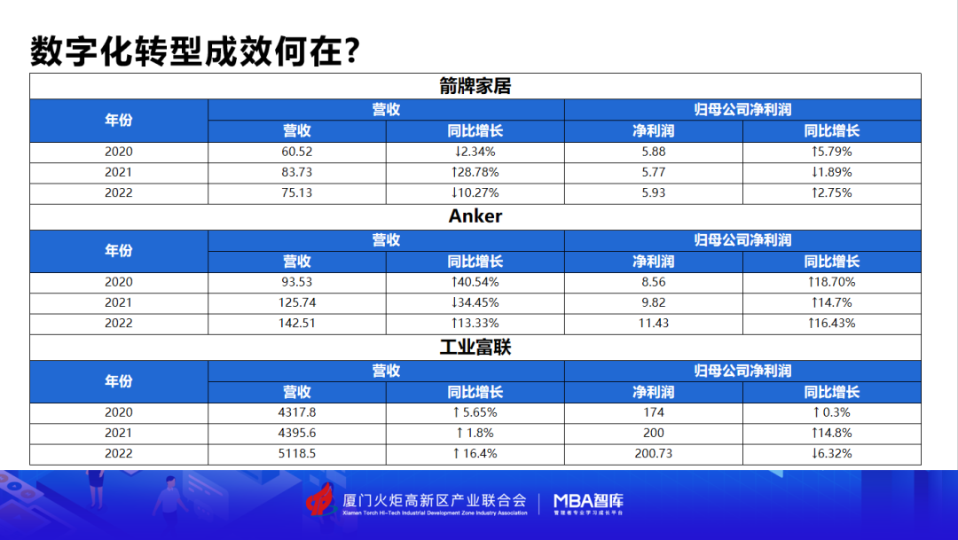 我们以三家企业为例, 下方是三家企业三年的营收增长率:我们能看出,经过数字化转型后三家企业的营收与净利润都得到了增长。