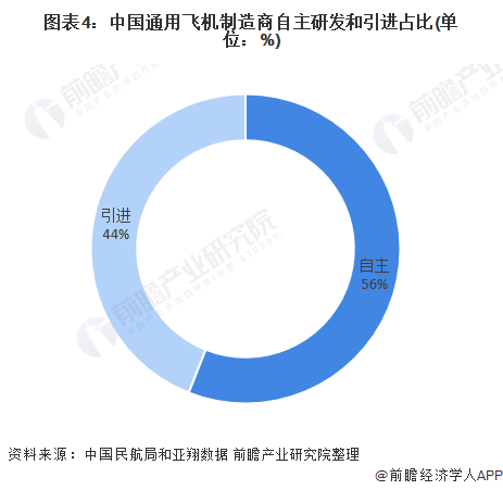 中国尽管拥有这巨大的通用飞机市场潜力,但是在通用飞机制造方面起步晚、底子薄,在过去长期以来始终在努力追赶国外先进水平。截至2020年6月,中国国内已有32家通用航空器飞机制造商取得了中国生产许可证(PC)。其中生产自主研发机型的厂商数量占到了56%,直接引进或者收购的厂商占到了44%。