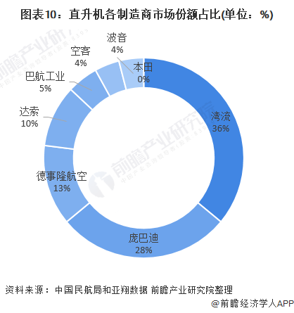 直升机机队占整个通用航空器机队的37%,2020年机队总数达1070架。从直升机制造商市场份额来看,罗宾逊凭借R44和R22这两款“爆款”机型而占据榜首,占比达30%。总部位于法国的空客、美国的贝尔和意大利的莱昂纳多分别凭借23%、16%和10%的市场份额占据第二至四名。